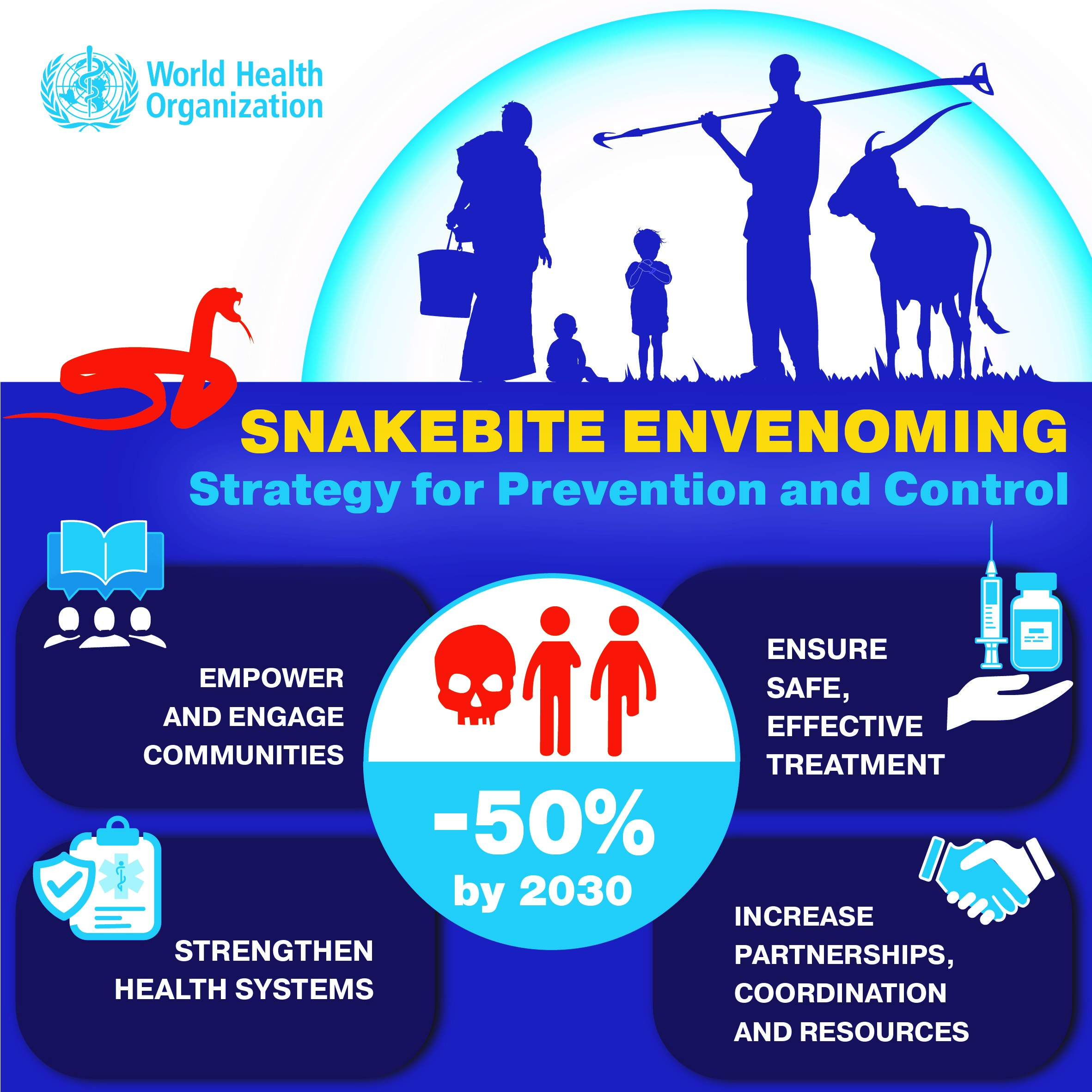 Snake antivenoms are effective treatments to prevent or reverse most of the harmful effects of snakebite envenoming and are included in the WHO list of essential medicines. Most deaths and serious consequences from snake bites are entirely preventable by making safe and effective antivenoms more widely available and accessible, and raising awareness on primary prevention among communities and health workers.