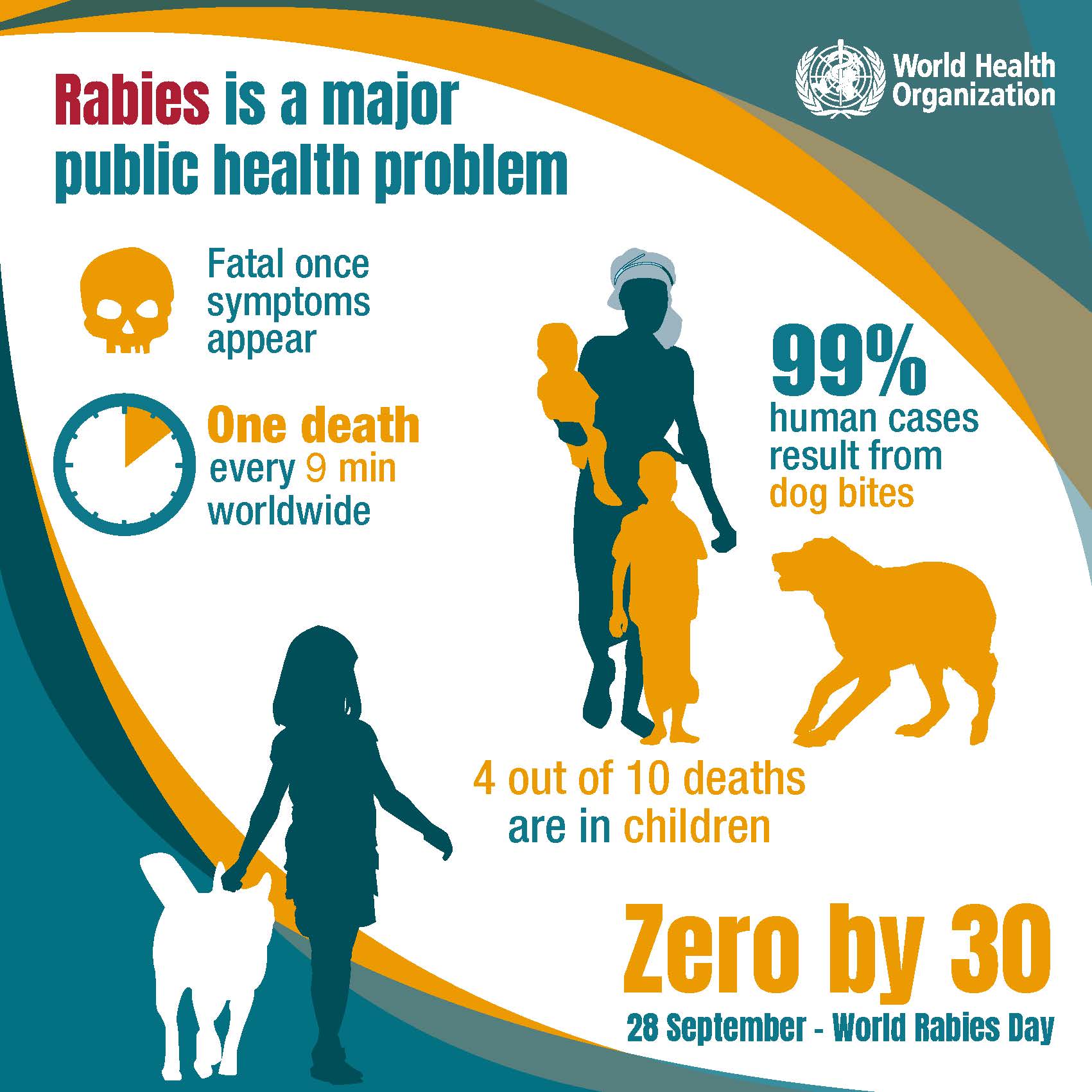 Rabies – a viral disease that occurs in more than 150 countries and territories – is usually fatal once symptoms appear. Dog-transmitted rabies accounts for about 99% of human rabies cases. It is estimated that 59,000 people die from rabies every year.