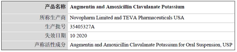 奥格门汀和阿莫西林克拉维酸钾,批号35405327A